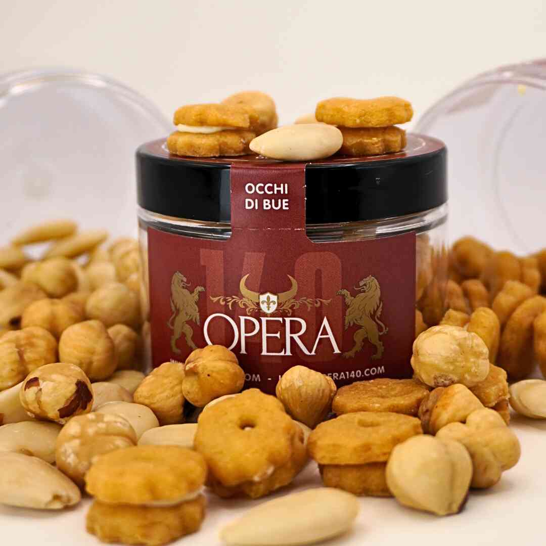 Vasetto da 50 g di Biscotti Occhi di Bue senza glutine, lattosio, uova e zuccheri aggiunti